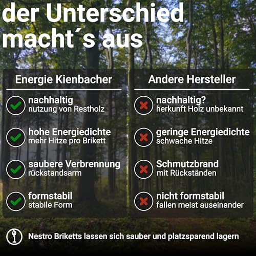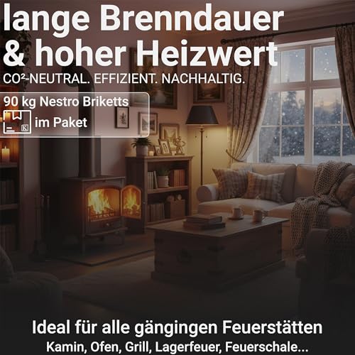 Die 10-kg- bzw. 120-kg-Nestro Briketts aus reinem Bucheholz bieten eine saubere, CO2-neutrale Brennstofflösung für Kaminöfen, Kachelöfen und Holzheizungen. Gepresst ohne Zusatzstoffe oder Bindemittel, liefern die Briketts einen hohen Brennwert und eine längere Brenndauer. Aufgrund des Quellverhaltens beim Abbrand sollten Brennraum und Feuerstätte entsprechend dimensioniert werden: Bei kleineren Kaminen reicht oft ein Brikett (oder ein Drittel bis die Hälfte eines Briketts). Die Briketts sind maßgeblich länger und breiter, wodurch sie sich beim Abbrand ausdehnen können. Die Lieferung erfolgt inklusive Verpackung im Karton; einzelne Briketts können gebrochen sein, der Energiegehalt bleibt jedoch unverändert. Dieses Naturprodukt weist natürliche Schwankungen in Feuchtigkeit, Festigkeit und Abbrand auf, bleibt aber durchgehend energieoptimiert. Die Briketts eignen sich für den Einsatz in gängigen Kaminöfen, Holzöfen und Ofenanlagen und eignen sich zudem als Anzünd- bzw. Anmachhilfe oder als Alternative zu Holz- und Kohlebriketts. Hinweis: Die Fotos dienen als Beispielfotos zur Produktdarstellung; genaue Palette und Mengenausführung kann variieren.
