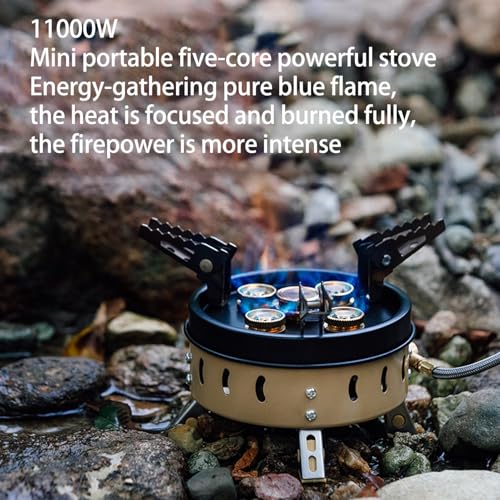 11000 W Camping- Gaskocher, tragbarer Gaskocher mit 5 Kupfer- Ofenköpfen, Piezo- Zündung und Tragetasche, tragbarer Propangaskocher für Camping, Wanderrucksack, Outdoor