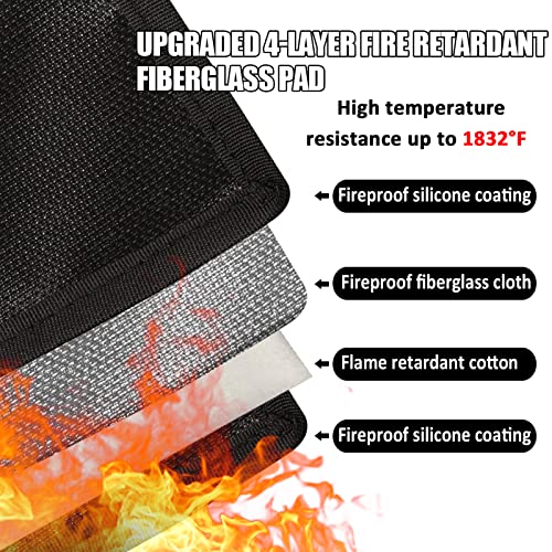 Verbesserte 4-lagige, feuerhemmende Kaminmatte aus Baumwolle und Fiberglas, hitzebeständig bis 1000 °C. Rutschfest, wasserdicht und langlebig – schützt Böden vor Funken, Glut und Flüssigkeiten.