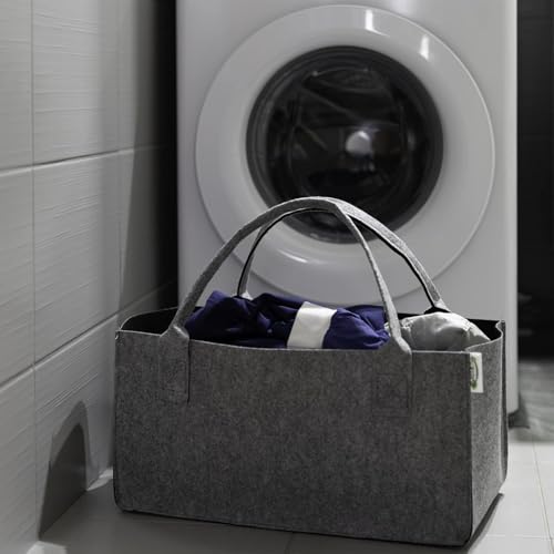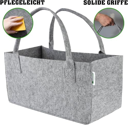 2 Stück Filztaschen Hellgrau Einkaufstasche Kaminholztasche Kaminholzkorb Filz Zeitungsständer Zeitungskorb (Hellgrau)