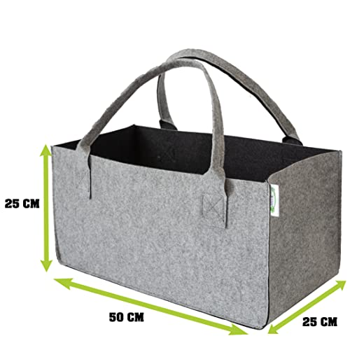 Filztasche aus EU-Herstellung in robustem Filz, 50,5 x 24,5 x 24,5 cm. Solide deutsche Qualität, vielseitig einsetzbar als Einkaufstasche, Kaminholzkorb oder Zeitungskorb.