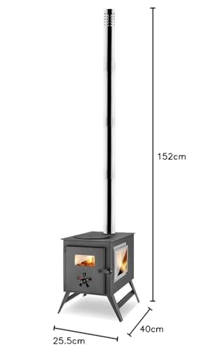 Robuster, kompakter Zeltofen Hugo mit Herdplatte, inklusive Edelstahl-Schornstein und Funkenflug-Resistor. Ideal für Gartenpartys, Camping und mobiles Kochen im Freien.