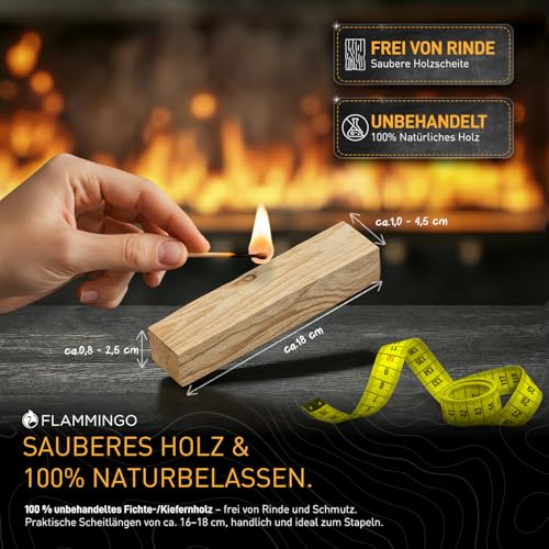 30 kg trockenes Anfeuerholz in Karton, unbehandeltes Fichten- und Kiefernholz. 16 cm Scheitlänge, 1,5 cm Scheithöhe, 3 cm Scheitbreite. Kammergetrocknet für schnelleres Feuererreichen.