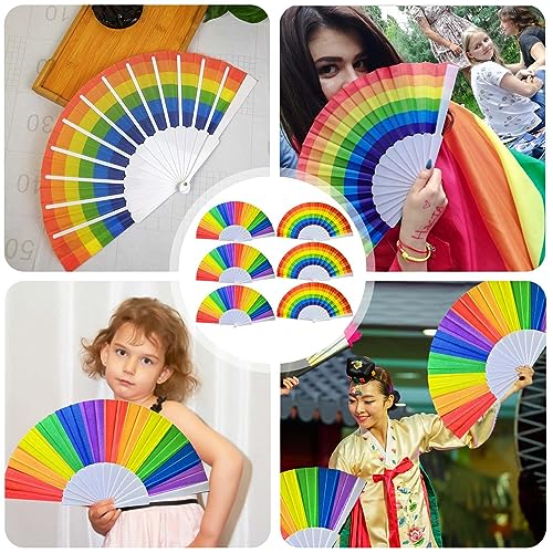 6 Stück Regenbogen Faltfächer: Rgenbogen Fächer Bunt, Handfächer Regenbogen, Handfächer Falten Regenbogenfächer, Hand Faltfächer Handfächer für Sommer Frauen Männer Month Accessoires Party Dekoration