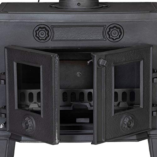 7 kW Kaminofen Globe Fire Acturus II aus Gusseisen- Rustikaler Gussofen für Holz & Kohle- Mit seitlicher Nachlegetür