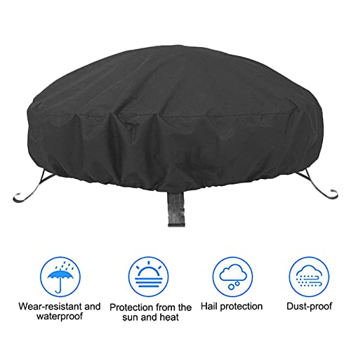 Abdeckung für Feuerschale Wasserdicht Runde Feuerstelle Abdeckung, Winddicht, UV- Beständiges, Abdeckung Feuerschalen für Garten, Terrasse und Balkon, Verstellbarer Kordelzug, Schwarz (120x46cm)