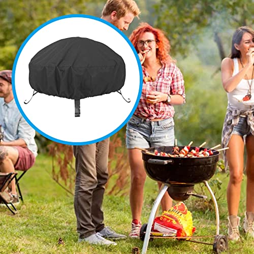 Abdeckung für Feuerschale Wasserdicht Runde Feuerstelle Abdeckung, Winddicht, UV- Beständiges, Abdeckung Feuerschalen für Garten, Terrasse und Balkon, Verstellbarer Kordelzug, Schwarz (85x40cm)