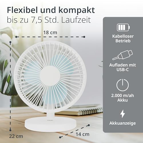Kompakter Tischventilator für effektive Luftzirkulation am Arbeitsplatz oder zu Hause. Leiser Betrieb, stabile Bauweise und flexible Platzierung auf Schreibtischen oder Regalflächen.