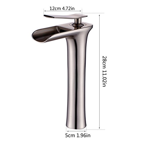 Aimadi Waschtischarmatur Wasserfall Wasserhahn Bad Mischbatterie Badarmatur Waschbeckenarmatur Waschbecken Badezimmer Hoch Gebürsteter Nickel