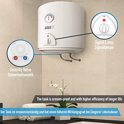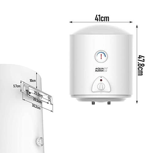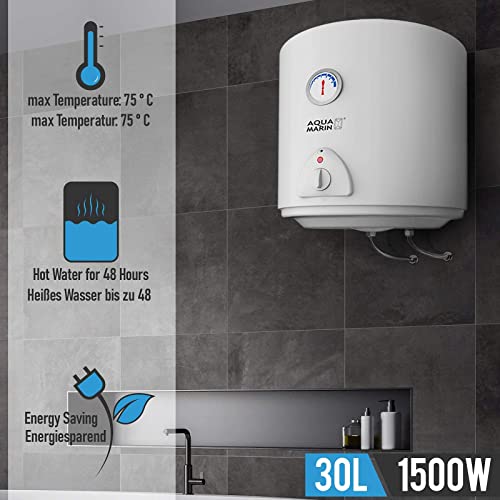Aquamarin Warmwasserspeicher- Elektro, 30l Speicher, Energiesparend, 1500W Heizleistung, max. 75°C, Thermometer, Sicherheitsventil, Magnesiumanode- Boiler, Warmwasserboiler, Wasserboiler