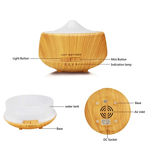Aroma Diffuser, Melojoy 250ml Ultraschall Aromatherapie Luftbefeuchter Öl Diffusor mit 7 LED Farbwechsel für Schlafzimmer, Spa, Yoga, Wohnzimmer, Konferenzraum