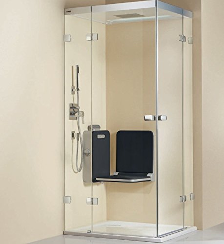 Kompakter Klappsitz mit Rückenlehne für Dampfbäder und Dampfduschen. Großzügige Sitzfläche, belastbar bis 130 kg, hochwertige Oberflächen, klappbar mit Bewegungsdämpfer und Magnetsicherung.