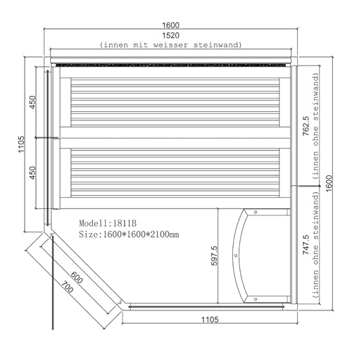 AWT AQART WATER TECHNOLOGY Sauna E1811B Pinienholz/ 160×160/ 6kW Vega