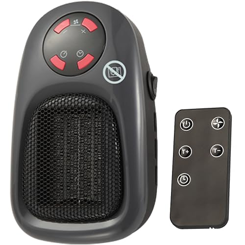 Balderia SH500 Mini Heizlüfter- 500W Keramikheizung für Steckdose, Heizfläche bis 20 m², einstellbarer Thermostat 15- 30 °C, Timer bis 12 Std, Überhitzungsschutz, Fernbedienung, Kompakt