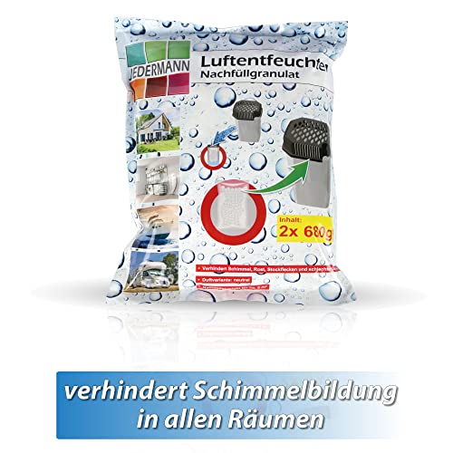 Bestlivings Luftentfeuchter Nachfüll Granulat (2X 680g), bis 55m² Raumgröße- für Luftentfeuchterbox mit Ausgießer