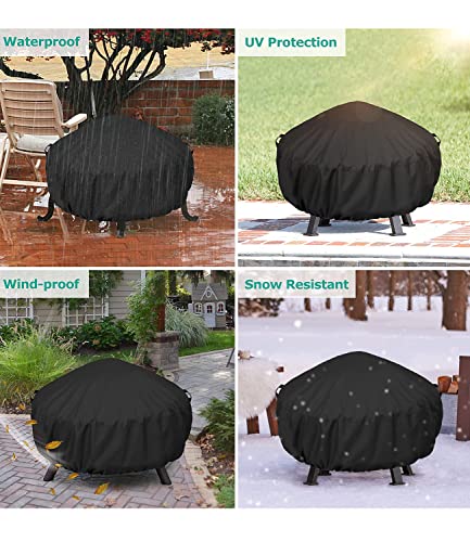 Bettermade Feuerschalenabdeckung rund für Feuerstelle 81, 3 cm, wasserdichte Outdoor- Feuerschalenabdeckung mit Polyester und PVC- Beschichtung, 32, 5 Durchmesser x 16, 7 H, Schwarz