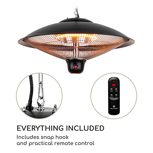 blumfeldt Heizsporn- Deckenheizstrahler, Infrarot- Heizstrahler, Karbon- Heizelement, 3 Heizstufen: 700, 1300 oder 2000 W, LED- Beleuchtung, Durchmesser: 60, 5cm, Schutzklasse: IP34, schwarz