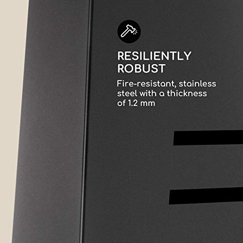 Der Knight on Fire Gartenkamin von Blumfeldt verbindet zeitloses Design mit rauchfreiem, effektvollem Feuerlebnis. Gefertigt aus feuerresistentem Stahl überzeugt er durch Stabilität, Kippsicherheit und eine moderne Optik, die sich harmonisch in jeden Außenbereich einfügt. Dank FireView-Technologie genießen Sie eindrucksvolle Flammen und gleichmäßig warme Stunden im Freien. Einfach Kohle, Holz oder Holzkohle im Inneren entzünden und über Stunden die Wärme im Garten oder auf der Terrasse genießen. Der Gartenkamin fungiert nicht nur als zuverlässige Heizquelle, sondern auch als stilvoller Blickfang, der gemütliche Atmosphäre schafft – ideal für Herbst- und Winterabende. Mit hochwertiger Verarbeitung und durchdachter Konstruktion bietet der Knight on Fire Robustheit und Langlebigkeit, sodass Sie lange Freude an diesem Terrassenofen haben. Die robuste Standkonstruktion und der Standfuß sorgen für zusätzliche Stabilität, sodass er auch auf unterschiedlichen Untergründen sicher verwendet werden kann. Ein umfangreiches Zubehörpaket inklusive Holzkohlerost und Schürhaken ergänzt das praktische Einsatzfeld und macht den Knight on Fire zum vielseitigen Begleiter für Stunden im Freien.