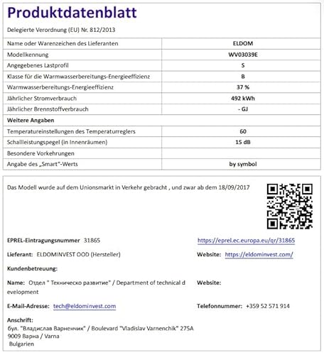Der Boiler Warmwasserspeicher 30L druckfest Eldom Favourite Digital bietet kompakte Reserve für Warmwasser im Haushalt. Über das integrierte Wi‑Fi Modul lässt sich der Speicher bequem via Eldom‑App steuern. Der speziell entwickelte Smart Control Algorithmus ermöglicht eine präzise Temperatureinstellung, programmierbare Bedienung und eine übersichtliche Energieverbrauchanzeige. Zu den Merkmalen gehören ein kälte- und warmwasserseitiger Anschluss von 1/2 Zoll, ein druckfestes Kombi-Rückschlagventil, zwei Magnesium-Schutzanoden sowie Spritzwasserschutz gemäß IP24. Mit einer Leistung von 1500 W bei 230 V lässt sich der Speicher zuverlässig betreiben. Die Kompaktheit ist durch Abmessungen von 387 mm Breite, 387 mm Tiefe und 560 mm Höhe gegeben. Das Gehäuse ist in Weiß gehalten und der Anschluss erfolgt über das Netzkabel mit Stecker. Dieses Produkt ist ideal geeignet für kompakte Warmwasserversorgung in Haushalten, in denen Flexibilität und intelligentes Management des Warmwassers gefragt sind.