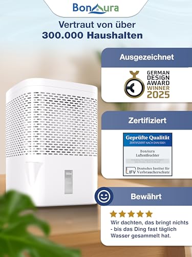 BonAura Luftentfeuchter ohne Strom- Raumentfeuchter für Keller, Bad uvm.- 680g Luftenfeuchter Nachfüllpack inklusive- Entfeuchter und Luftentfeuchter Granulat im Set- Schutz vor Schimmel