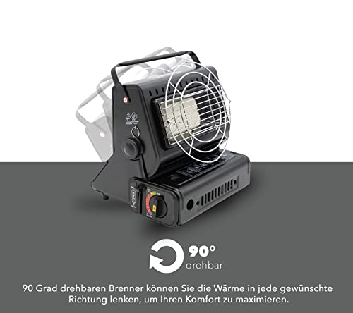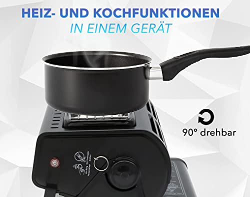 Campata tragbare 2in1 Gasheizung & Gaskocher | 90° drehbar | mini Camping- Heizung Gasheitzer | Keramik- Brenner | Gasstrahler | Kochfunktion, Zeltheizung (+4 Gaskartuschen)