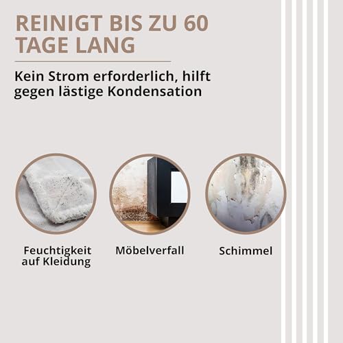 Der CASAVIVA Luftentfeuchter ARIAPURA bietet eine einfache Lösung gegen Feuchtigkeit, Schimmel und unangenehme Gerüche in Bad, Wohnzimmer, Küche sowie Kellerräume. Ohne Stromzufuhr arbeitet das System zuverlässig mit hydrophilen Kristallen, die bis zu dreimal ihr Eigengewicht aufnehmen können. Dadurch reduziert sich Kondenswasser in feuchten Bereichen – eine behagliche Luftqualität wird gefördert. Das Set enthält 12 Stück à 500 ml, ideal für mehrstufigen Einsatz oder größere Räume. Zusätzlich sorgt ein aromatherapeutischer Duft durch Eukalyptus und Teebaumöl für eine angenehme, frische Raumluft. Das kompakte, unauffällige Design passt perfekt in Badschränke, Küchenregale oder das Auto und ermöglicht eine dezente Feuchtigkeitskontrolle, ohne Stromverbrauch.