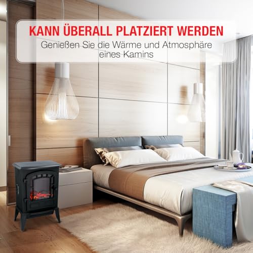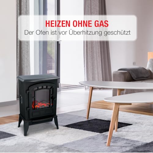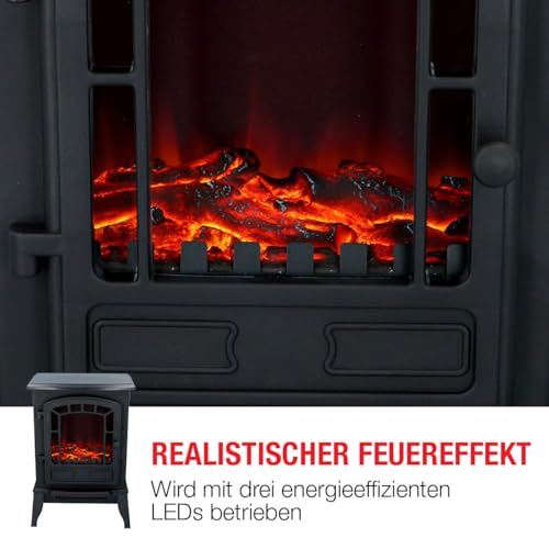 Classic Fire Torino Elektrokamin mit Heizung- Elektroheizung 2000W- Kaminofen mit Heizung, Schalttafel und Timer- Elektroherd mit LED- Flammen- Freistehend- Schwarz