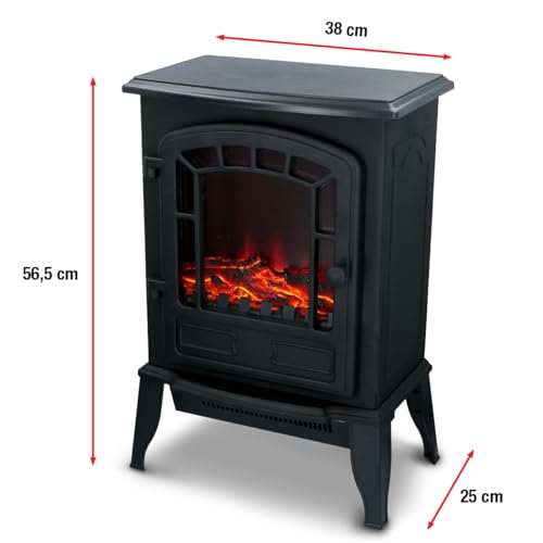Der Classic Fire Torino Elektro-Kamin mit Heizung verleiht Ihrem Wohnraum eine komfortable Wohlfühl-Atmosphäre und liefert gleichzeitig Wärme. Die Heizung arbeitet elektrisch, wodurch Gaspreise vermieden werden können. Die Temperatur des Dekokamins lässt sich nach Bedarf einstellen, sodass Sie gemütliche Wärme genießen können. Der freistehende Kamin benötigt keinen Schornstein oder Rauchabzug – einfach auspacken, in die Steckdose stecken und loslegen. Das integrierte LED-Flammenspiel sorgt mit drei energiesparenden LEDs für ein realistisches Feuerbild, während künstliche Holzscheite eine authentische Optik vermitteln. Das Modell Torino kommt in Schwarz und bietet eine schlanke, standfeste Konstruktion mit einem 1,5 m langen Netzkabel. Ideal geeignet für Räume, in denen eine attraktive Dekoration gewünscht ist, die zugleich behagliche Wärme spendet. Geeignet für vielseitige Einsatzbereiche im Zuhause, ohne Einschränkungen durch Rauchabzug oder enrichment des Heizsystems – lediglich der Einsatzbereich im Badezimmer ist ausgeschlossen.