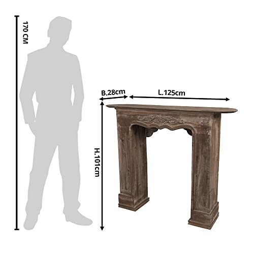 Klassischer Kamin in brauner Holzoptik von Clayre & Eef, Maße 125 x 28 x 101 cm. Stilvolles Möbelstück für Garderobenräume, das Wärme und Ordnung vereint.