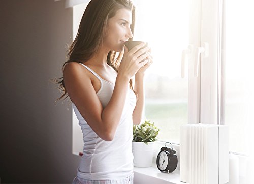 Kompakter Luftreiniger mit drei Filterschichten und fünf Filtereffekten, der Feinstaub (PM10, PM2,5) reduziert, völlig ozonfrei arbeitet und selbst im Nachtmodus leise läuft – ideal für Wohn- und Büroräume.