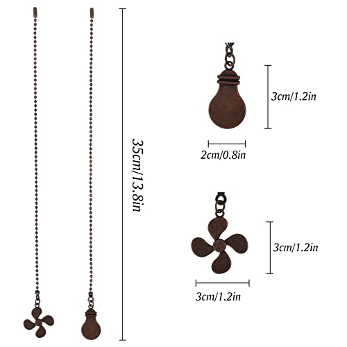 Deckenventilator Zugkette, 4 Stück Ventilator Zugkette mit Fan Glühbirne Dekorativ, Zugkettenverlängerung mit Kugelkettenverbinder, Extra lange Beleuchtung Perlen Kugelkette Anhänger(Rotbronze)