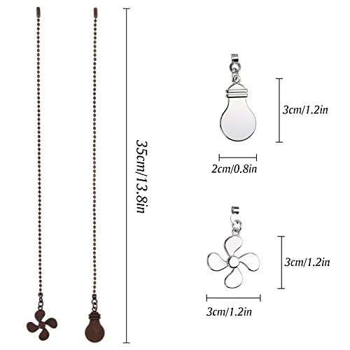 DIYJEP Deckenventilator Zugkette, 4 Stück Ventilator Zugkette mit Fan Glühbirne Dekorativ, Zugkettenverlängerung mit Kugelkettenverbinder, Extra lange Perlen Kugelkette Anhänger (Silber + Rotbronze)