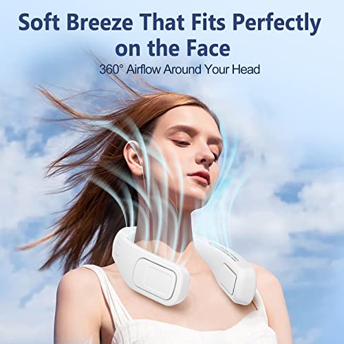 DSOEKEU Tragbarer Halsventilator, persönlicher Ventilator mit 360 ° kühlendem Luftstrom, wiederaufladbar, freihändige Halsventilatoren, klingenlos, tragbarer Halskühler für Damen und Herren- Weiß