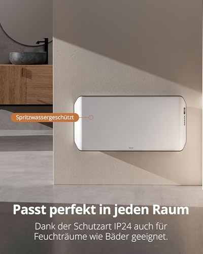Edge ist ein leistungsstarker 2000-W-Elektroheizkörper mit IP24-Spritzwasserschutz. Er erhöht die Raumtemperatur zügig, arbeitet effizient und lässt sich flexibel per App steuern.