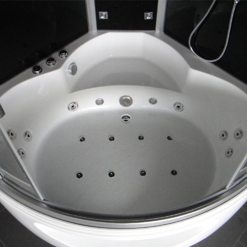 Kompakte EAGO Dampfdusche DA333F8 in Schwarz, 150 x 150 cm. Stilvolles Design, zuverlässige Dampferzeugung und geeignete Nutzung für kleine bis mittlere Bäder.