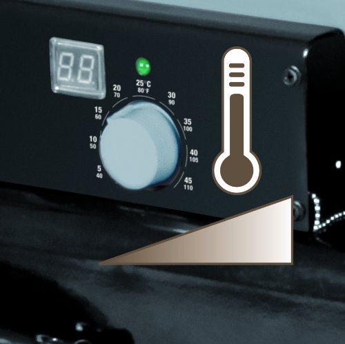 Der Einhell DHG 360 Heißluftgenerator bietet mobil beheizte Räume dank Nennwärmeleistung von bis zu 36 kW. Ausgestattet mit integriertem Brennstofftank, elektrischer Zündung und praktischem Ein- und Ausschalter lässt sich sofort eine gewünschte Temperatur über den regelbaren Thermostat einstellen. Die Mobilität wird durch große luftgefüllte Räder gewährleistet, wodurch der Einsatzort flexibel bleibt. Alle relevanten Betriebsdaten sind übersichtlich im Blick: Flammenüberwachung per Fotozelle, Tanzanzeige und Manometer für den Pumpendruck unterstützen sicheren Betrieb. Zusätzlich sorgen Störungsanzeigen und ein integrierter Überhitzungsschutz für zuverlässige Sicherheit während des Heizbetriebs.