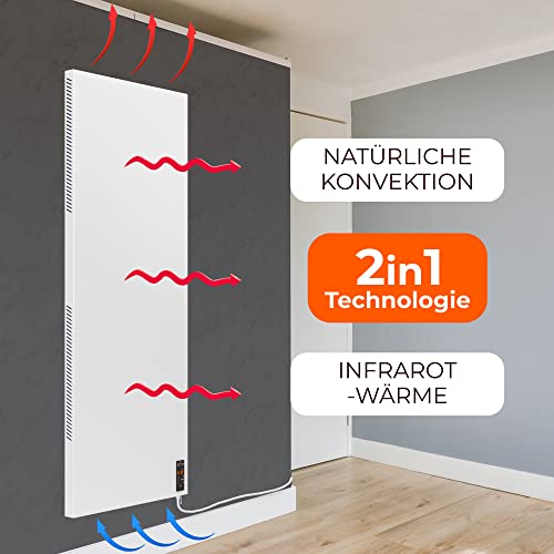 Elektro Infrarotheizung mit Thermostat und Konvektor Heizung 900 W bis 22 m2 von TermoPlaza Weiß- Vertikal Infrarot Wandheizung Elektrisch- Elektroheizung Energiesparend Infrarot Heizstrahler