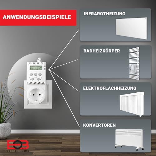 ELEKTROBOCK TS10 Steckdosen- Thermostat | Temperaturregler 230V für Elektro- & Infrarotheizung | Programmierbares Thermostat für Steckdose mit Display