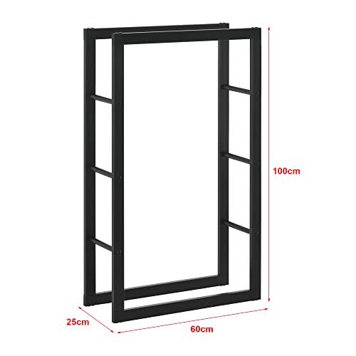 [en.casa] Kaminholzregal Täby Brennholzregal innen außen Metall 60 x 25 x 100 cm Holzunterstand Stapelhilfe für Feuerholz Holzlager Kaminholzständer Schwarz