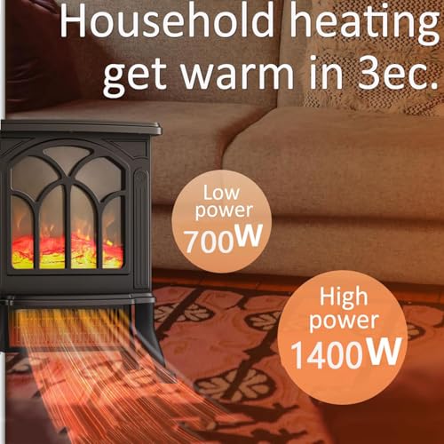 Energieeffiziente Heizgeräte, Elektrischer Kaminofen, Tragbarer Elektroherd, Freistehender Ofen mit realistischer 3D- Flamme, Einstellbarer Thermostat, Überhitzungssicheres Design