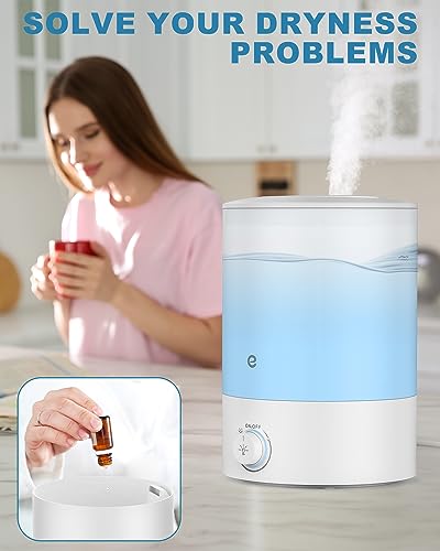 Esemoil Cool Mist Luftbefeuchter (2 l Wassertank), leiser Ultraschall- Luftbefeuchter für Schlafzimmer und große Räume- Top- Nachfüll- Design & 360°- Rotationsdüse, 8 Farben Nachtlicht für Babys