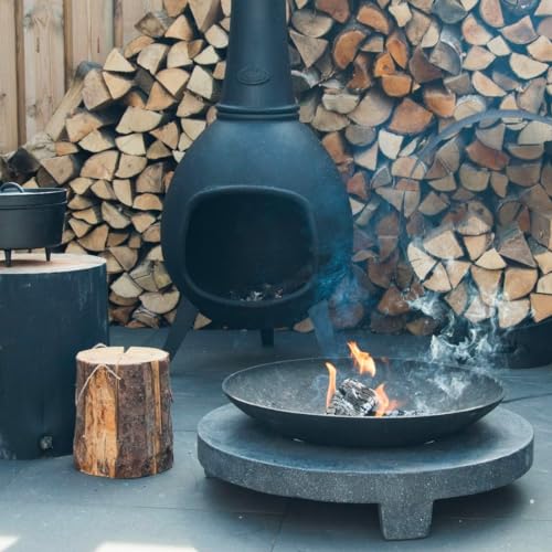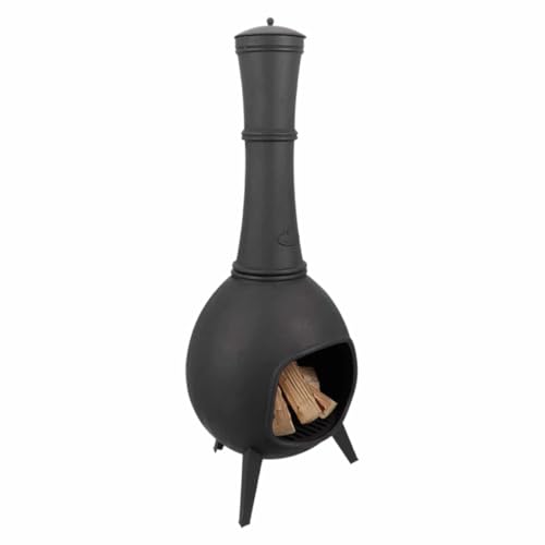 Esschert Design Terrassenofen, 150 cm hoch, schwarz, mit Deckel. Robuste Bauweise, deckelbar, optimale Wärmequelle für Garten und Terrasse.