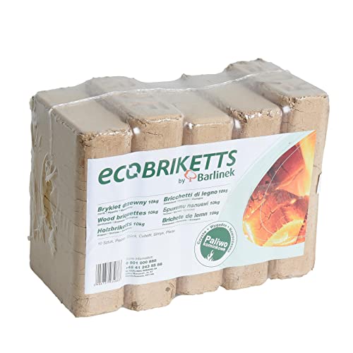 Hartholzbriketts aus Eichen- und Buchenholzspänen, trocken und sofort verwendbar, ohne Bindemittel, 10 Briketts pro 10 kg Packung, Heizwert ca. 5,0 kWh/kg.