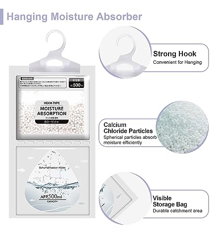 Effiziente Feuchtigkeitsabsorption bis 500 ml pro Beutel dank Calciumchlorid. Hängendes Design, flexible Einsatzbereiche in Küche, Bad, Schrank, Keller oder Garage. Einfach anzuwenden – Beutel aufhängen und bei Bedarf ersetzen.
