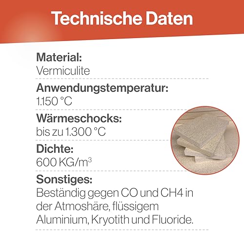 Die Feuerfest 123 Vermiculite-Platte bietet eine zuverlässige Brandschutzlösung für Kaminöfen, FeuerraumAuskleidung und weitere Anwendungen rund ums Heizen. Hitzebeständig bis 1.150 °C sorgt sie auch bei direkten Feuerkontakten für Stabilität und geringe Wärmeleitfähigkeit. Im Vergleich zu herkömmlicher Schamotte ermöglicht Vermiculite eine niedrigere Wärmeleitung im Brennraum, was Emissionen unterstützen kann. Die Platte im Format 300x200x15 mm eignet sich als robuste Feuerraumplatte, Isolationsbauteil oder Schornstein-Zusatzbauteil und findet auch Einsatz in Pizzaöfen oder Heizsystemen. Der Lieferumfang umfasst eine einzelne Vermiculite-Platte mit Gewicht ca. 0,70 kg; ein Abweichung im Farbton ist möglich. Die Materialien zeichnen sich durch hohe Festigkeit und geringe Wärmeleitfähigkeit aus, was eine sichere und effiziente Nutzung ermöglicht.