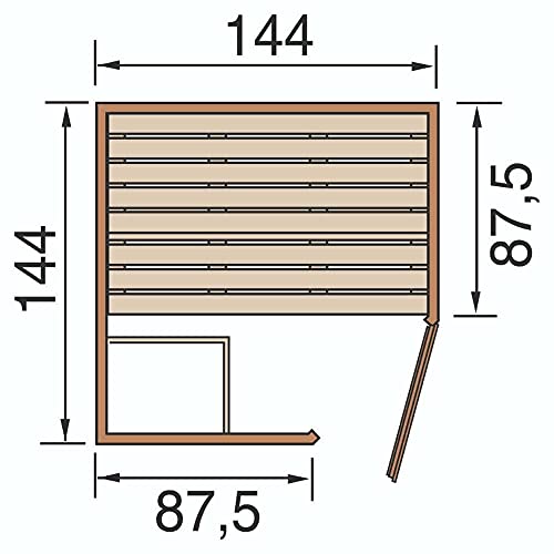 Die FinnTherm Massivholz- Elementsauna Eva Gr. 1 bietet Raumkomfort für bis zu vier Personen. Mit einer Grundfläche von 144 x 144 cm und einer Gesamthöhe von 200 cm sorgt sie für großzügige Liegeflächen und entspannte Saunamomente. Die stabile Elementbauweise ermöglicht eine einfache Montage der vormontierten Module und sorgt für eine robuste Konstruktion sowie ein zügiges Aufheizen, wodurch der Stromverbrauch optimiert wird. Durch die erstklassige Wärmedämmung der nordischen Fichte entstehen angenehme Temperaturen, die Stress reduzieren und Verspannungen entgegenwirken. Das moderne Design wird durch eine Glas-Tür ergänzt und bietet so eine stilvolle Wellness-Oase im Innenbereich. Eine ausführliche Montageanleitung samt Montagematerial gehört zum Lieferumfang, und der Transport zum Aufstellort erfolgt inklusive Terminabstimmung nach dem Kauf.