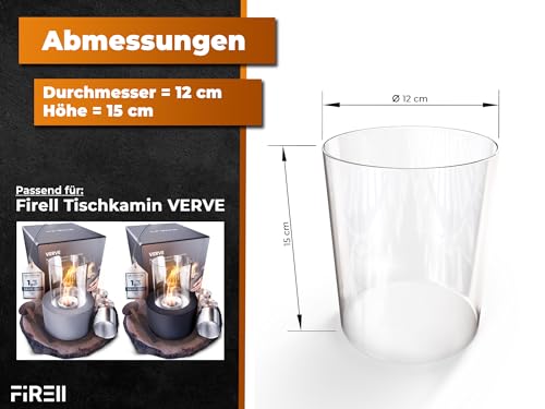 Firell Glas für Tischkamin Verve- Hitzebeständiger Glaszylinder [12 x 15 cm] für Tischkamin | Kompatibel für Firell Tischkamine Verve & Verve Black | feuerfest Glasröhre für Ethanol Kamine