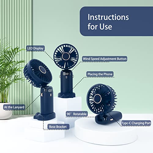 GARKALY Handventilator, tragbarer persönlicher Ventilator, hängender Halsventilator, 90 ° verstellbar, wiederaufladbar, batteriebetrieben, Reisen (5000 mAh, Marineblau E)