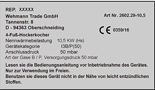 Gas- Hockerkocher 10, 5 KW Profi Hockerkocher mit Zündsicherung und Piezozünder inkl. 1, 5 m Schlauch u. Regler