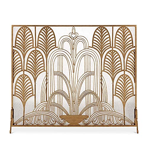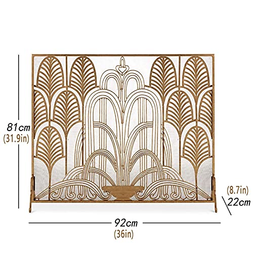 Goldfarbener Kaminschutz, freistehender Metall- Kaminschutz, 80 cm hoch, Robustes, einteiliges, ausgehöhltes Feuerschutztor, luxuriöses französisches geschnitztes Design Decoration